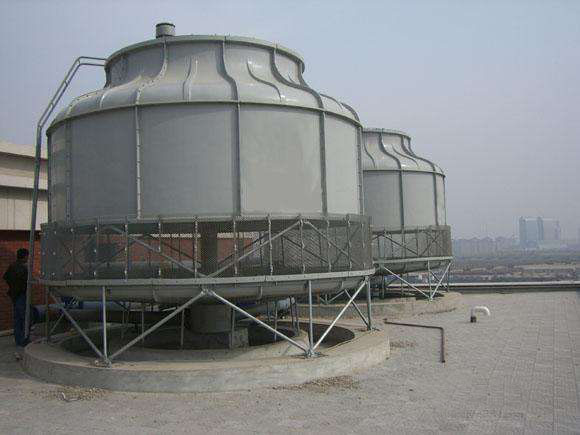 冷卻塔排氣管噪聲比進氣管噪聲高5~10dB(A),頻譜特點是以低頻居多的連續譜,應屬低頻噪聲。冷卻塔內循環熱水從灑水裝置落下時,與塔底裝水盤里的存水碰撞形成的淋水聲應屬高頻噪聲,淋水聲的高低與灑水的高度和單位時間的出水量有關系。冷卻塔總體噪聲為以低頻居多的連續譜,沒有突出的噪聲峰值,通常在31.5~2000Hz間,噪聲級為55~85dB(A)。大中型冷卻塔的噪聲應屬中高頻穩定噪聲,聲源“標稱聲級”在80db(A)左右,冷卻塔噪音治理的目的正常情況下應是將受噪聲危害的受聲點噪聲級控制在相應于當地的環境的噪聲國家標準之內。